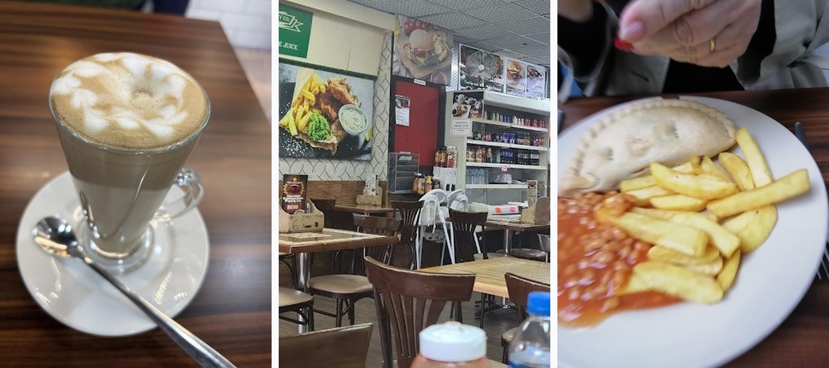 What a lovely cafe within the Redditch shopping centre, we discovered it when we visited the cinema a while back. Great value, friendly staff and a nice atmosphere for a cafe. The Cornish pasties are varied and tasty, a medium pasty meal with, beans, chips and and a tea or coffee is only 6.50. A real bargain. Next time we visit, I will take better photographs. Lots of great sauces too.