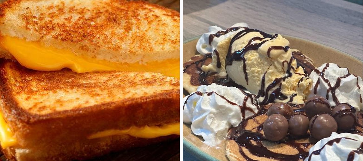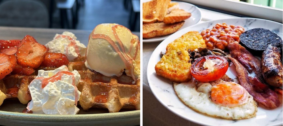 This cafe offers a variety of English dishes, including all-day breakfasts, lunch items, and hearty dinner options, along with a selection of sweet desserts.